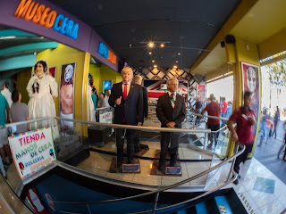 This is something like a wax or curio museum. Do you recognize the guy in the red tie?
