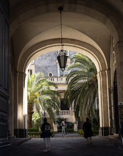 I am out of practice for travel - actually we both are. All of our flights - from ABQ to Chicago, Chicago to Istanbul, Istanbul to Catania went smoothly. It was only when we left the Catania airport to find out hotel for the night that we discovered a difference in expectation between us and the place we ended up at. Michael thought he had booked a hotel. Our driver took us to an apartment building in a very seedy part of town. Our driver called the number on our reservation and indeed we exactly where we were supposed to be. The apartment was on the second floor and is very large. But there is only the 1 bedroom instead of two we expected. After about 15 minutes of arguing Michael realized he had made a mistake and we took the next 30 minutes filling out paperwork, discovering there was an additional 30 Euro due because it was after 5pm, another 8 Euro for city tourist tax and 200 Euro for a security deposit. Apparently neither of us had read the fine print!
