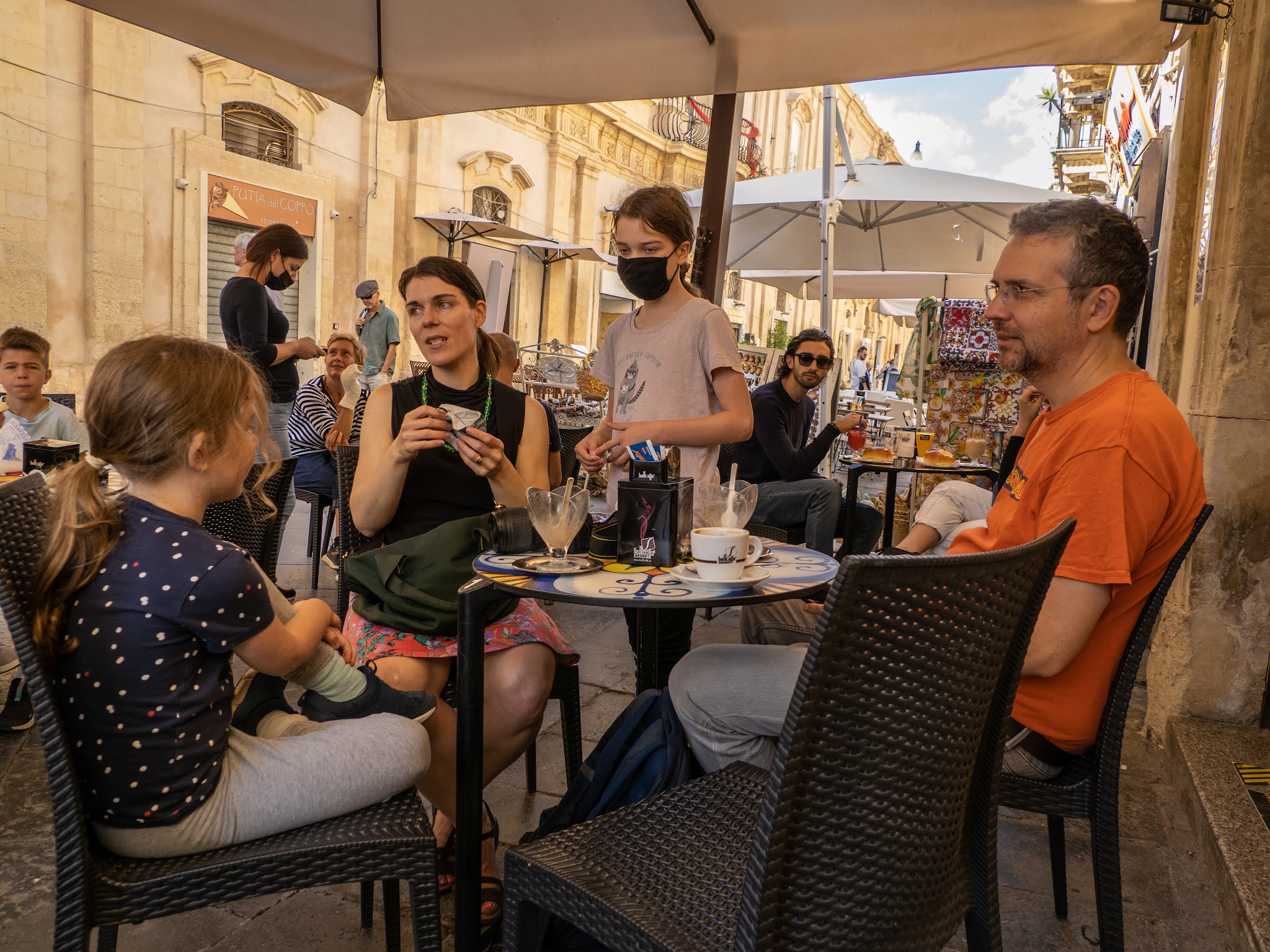 Today we drove to the baroque city of Noto. Michael and I had our first experience this trip, driving on extremely narrow Italian city roads. We missed the turn into the parking lot and ended up exploring lots of tiny narrow one way streets trying to get back to where we started and find the parking lot. Michael did a great job keeping his cool as frustrating as it was. One turn was almost a 360 degree turn. He had to back up several times to make the curve. We finally found the parking lot and made our way to the old town and the Cathedral.