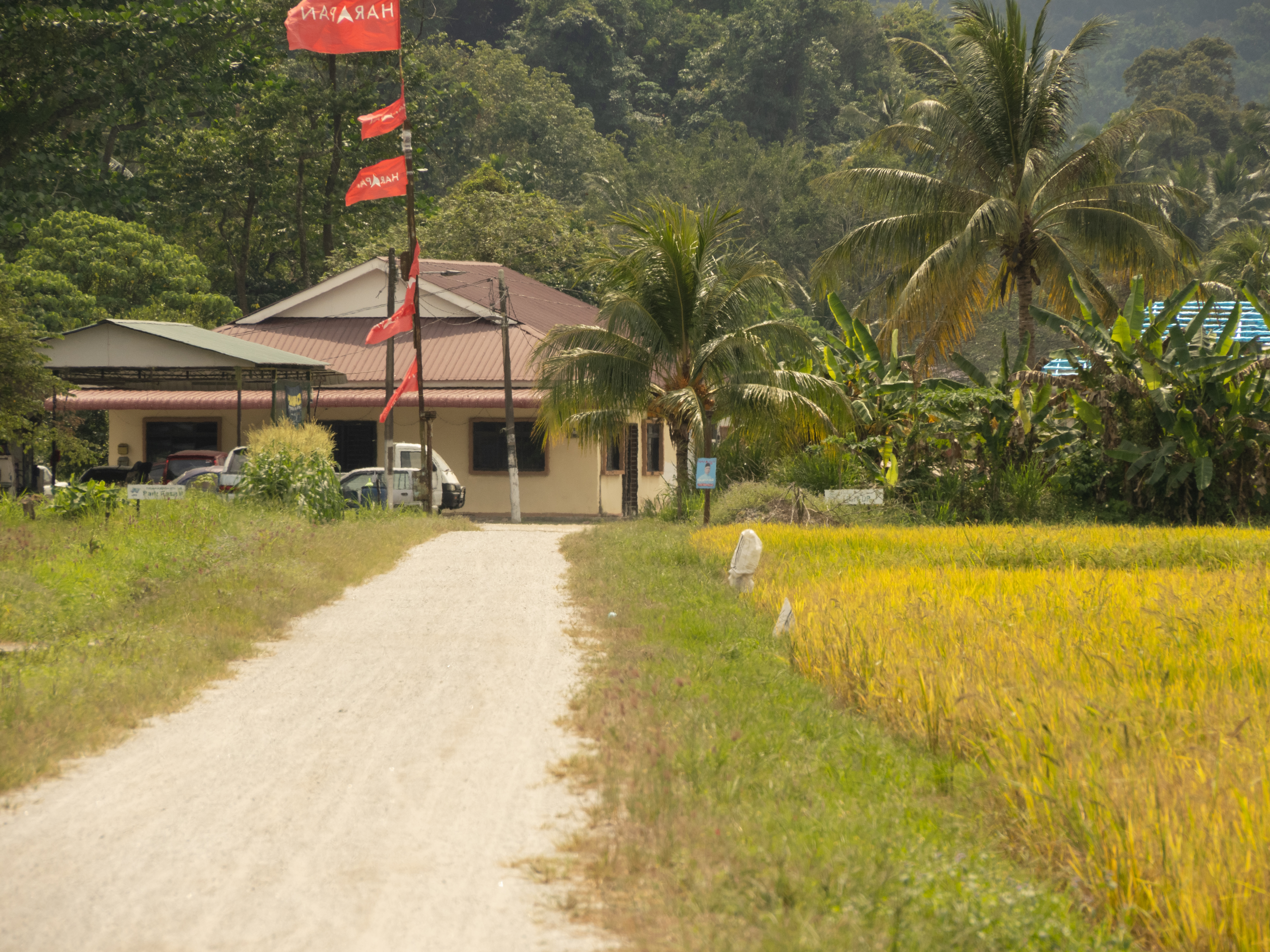 Through the trees you can see the one rice field that remains in use. As the Island has become more commercialized there is now less and less farming. We will go to that rice field next.